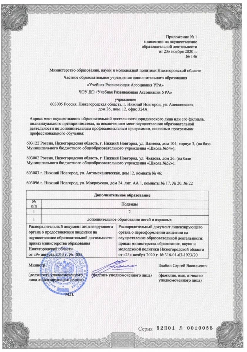 ПРИЛОЖЕНИЕ К ЛИЦЕНЗИИ НА ОСУЩЕСТВЛЕНИЕ ОБРАЗОВАТЕЛЬНОЙ ДЕЯТЕЛЬНОСТИ
