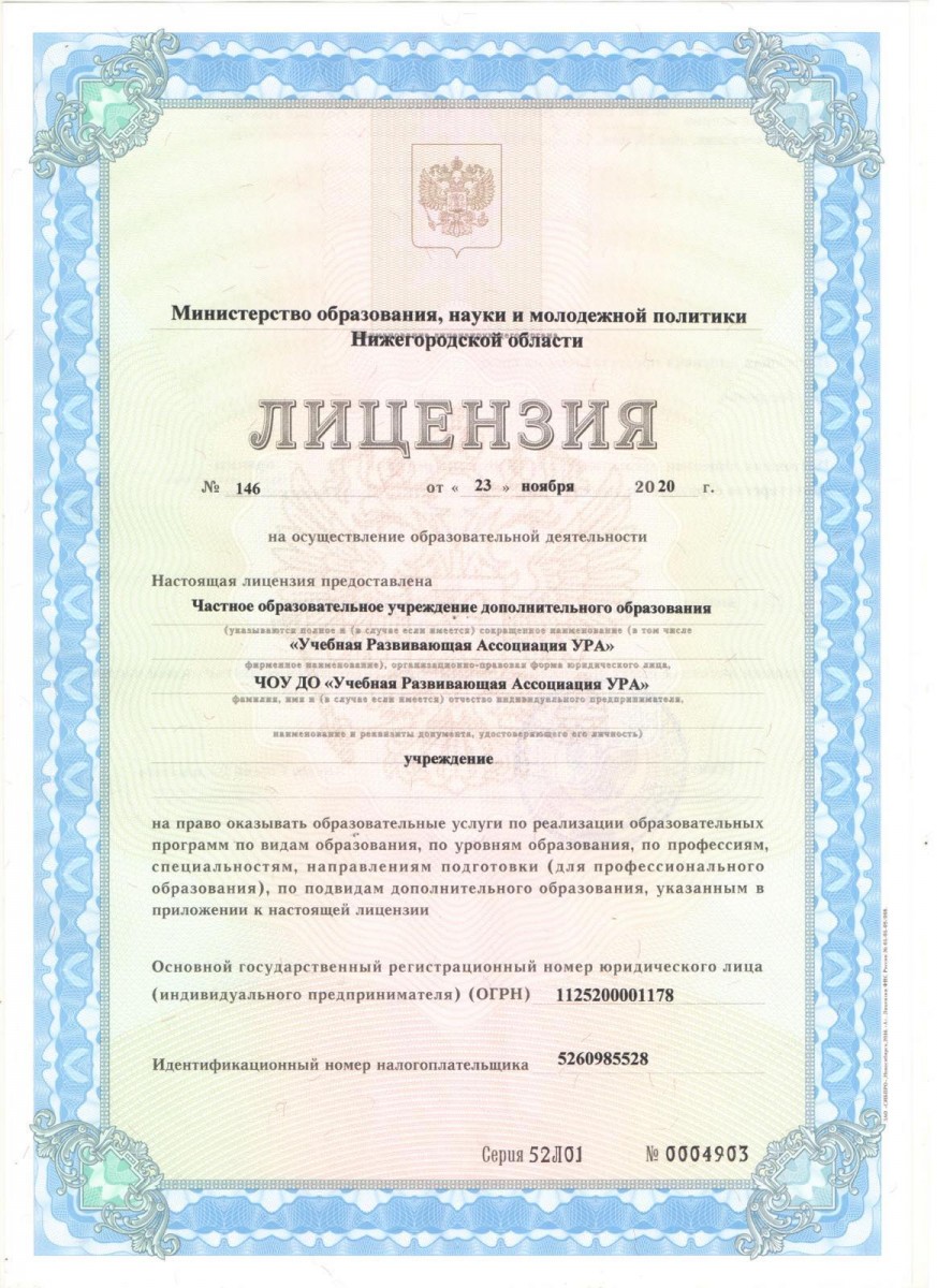 ЛИЦЕНЗИЯ МИНИСТЕРСТВА ОБРАЗОВАНИЯ НА ОСУЩЕСТВЛЕНИЕ ОБРАЗОВАТЕЛЬНОЙ ДЕЯТЕЛЬНОСТИ