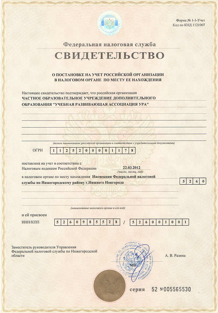 СВИДЕТЕЛЬСТВО О ПОСТАНОВКЕ НА УЧЕТ