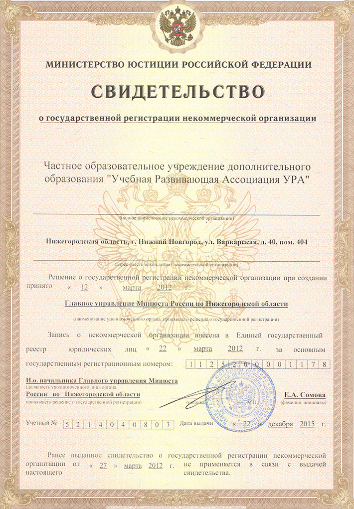 СВИДЕТЕЛЬСТВО О ГОСУДАРСТВЕННОЙ РЕГИСТРАЦИИ